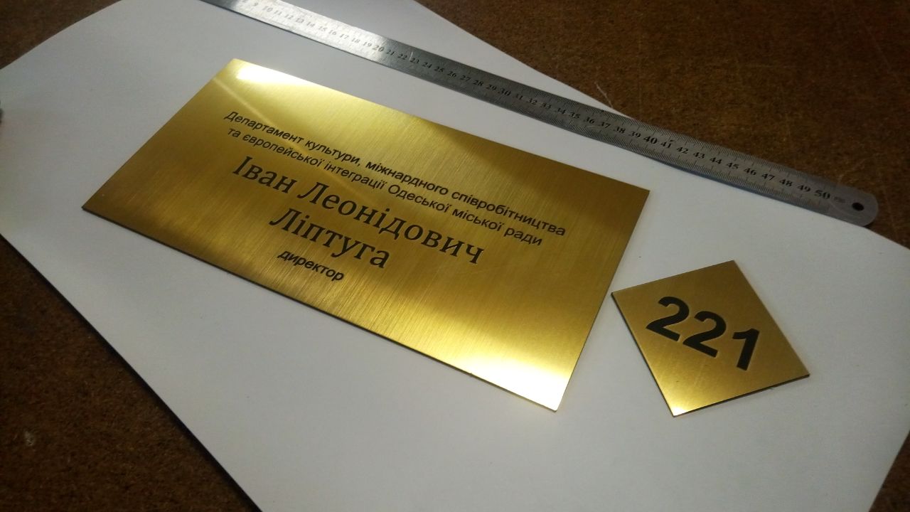 Ця технологія дозволяє виготовляти логотипи, шильди, інформаційні таблички та інші декоративні елементи будь-якої форми з високою повторюваністю та професійним виглядом. В результаті ви отримуєте виріб, який готовий до використання відразу після гравіювання, з чітким зображенням і довговічною якістю.