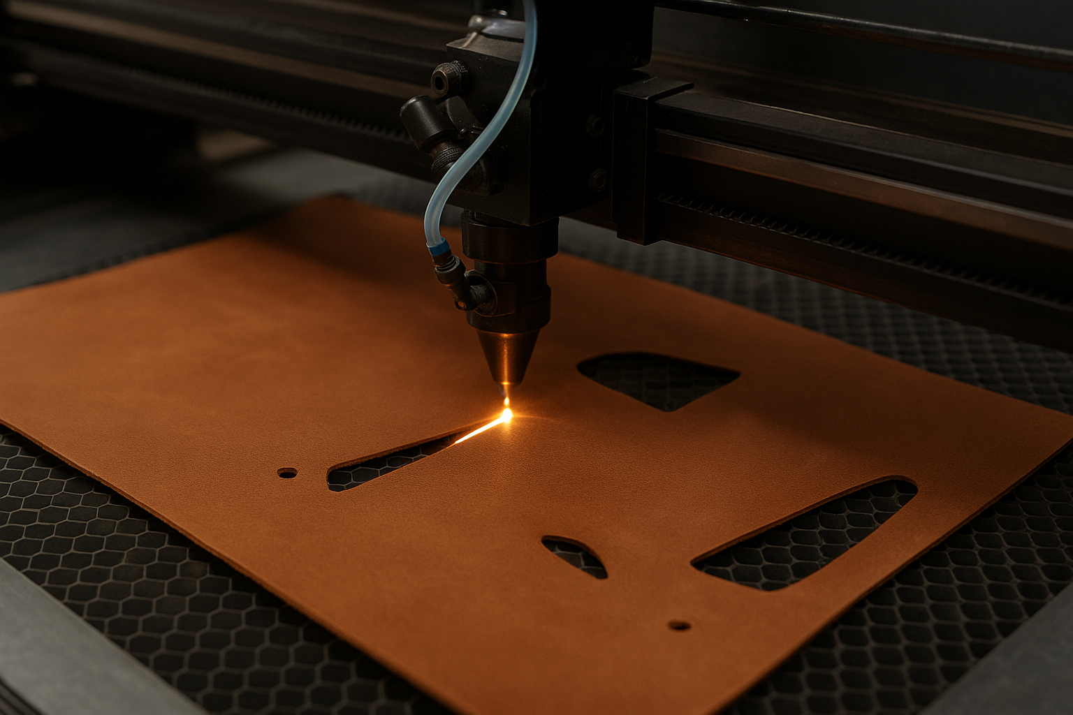 Лазерна порізка шкіри — це сучасна технологія точного та чистого різання шкіри без механічного навантаження. Промінь лазера рухається за цифровим контуром, забезпечуючи ідеальну геометрію та бездоганну якість країв навіть на найдрібніших елементах.
