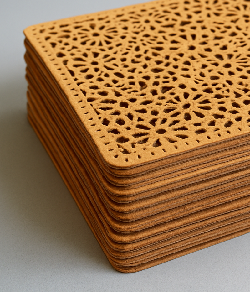 Завдяки лазерному різанню матеріал не рветься й не деформується, а краї залишаються акуратними навіть при найдрібніших елементах. Це дозволяє виготовляти продукцію з високою точністю, мінімальними відходами й ідеальним зовнішнім виглядом, який підкреслює якість вашого бренду.