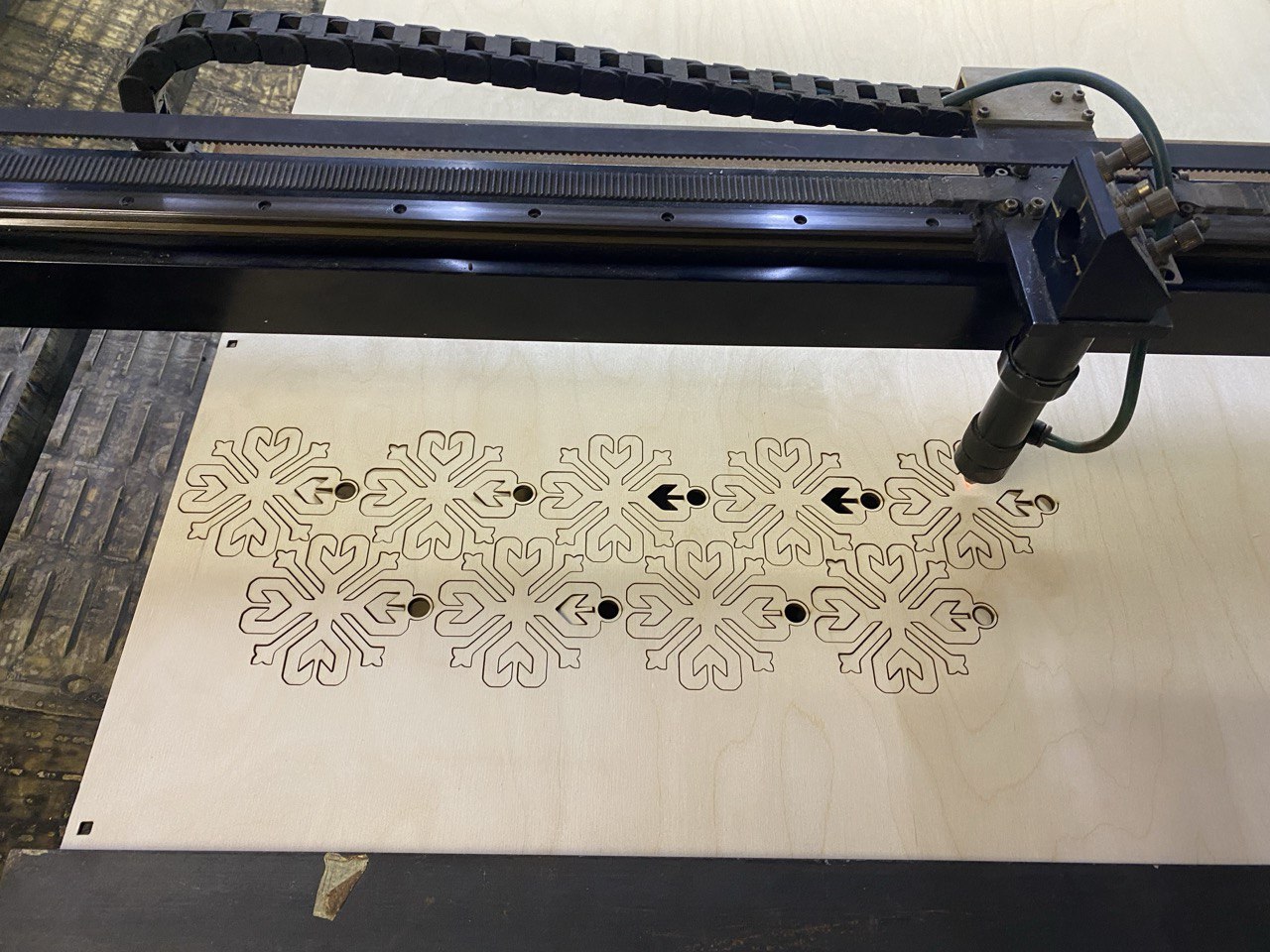 Наше сучасне обладнання має робочу зону 1300 × 900 мм, що дозволяє виконувати як дрібні вироби, так і великі елементи.