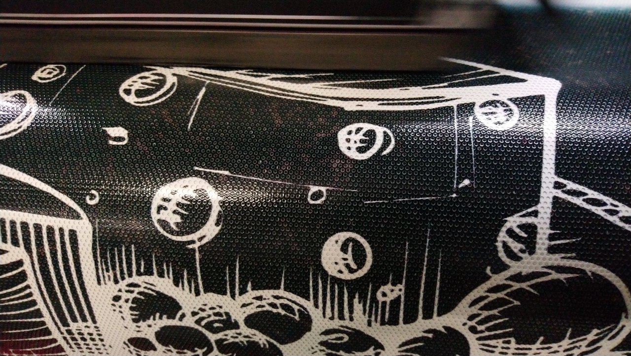 Сольвентний друк — класичний спосіб отримання яскравих і стійких зображень на плівці будь-якого розміру. Ідеально підходить для логотипів, наклейок та деталей брендування. Сольвентна фарба добре взаємодіє з гладкою поверхнею перфорованої плівки і відзначається високою стійкістю до сонця, дощу та механічних впливів.