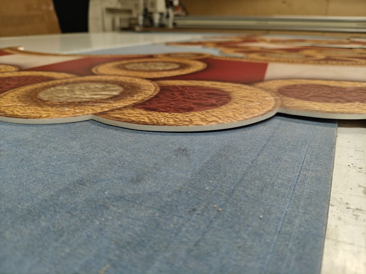 Інструмент акуратно вирізає контури виробів, залишаючи рівні кромки та чисті краї, навіть для об’ємних або складних елементів. Можливі різні види обробки: гравіювання, наскрізне різання, фаскування, пазування та 3D-обробка. Для складних форм застосовується оптимальна траєкторія руху інструмента, що виключає задирки та оплавлення.