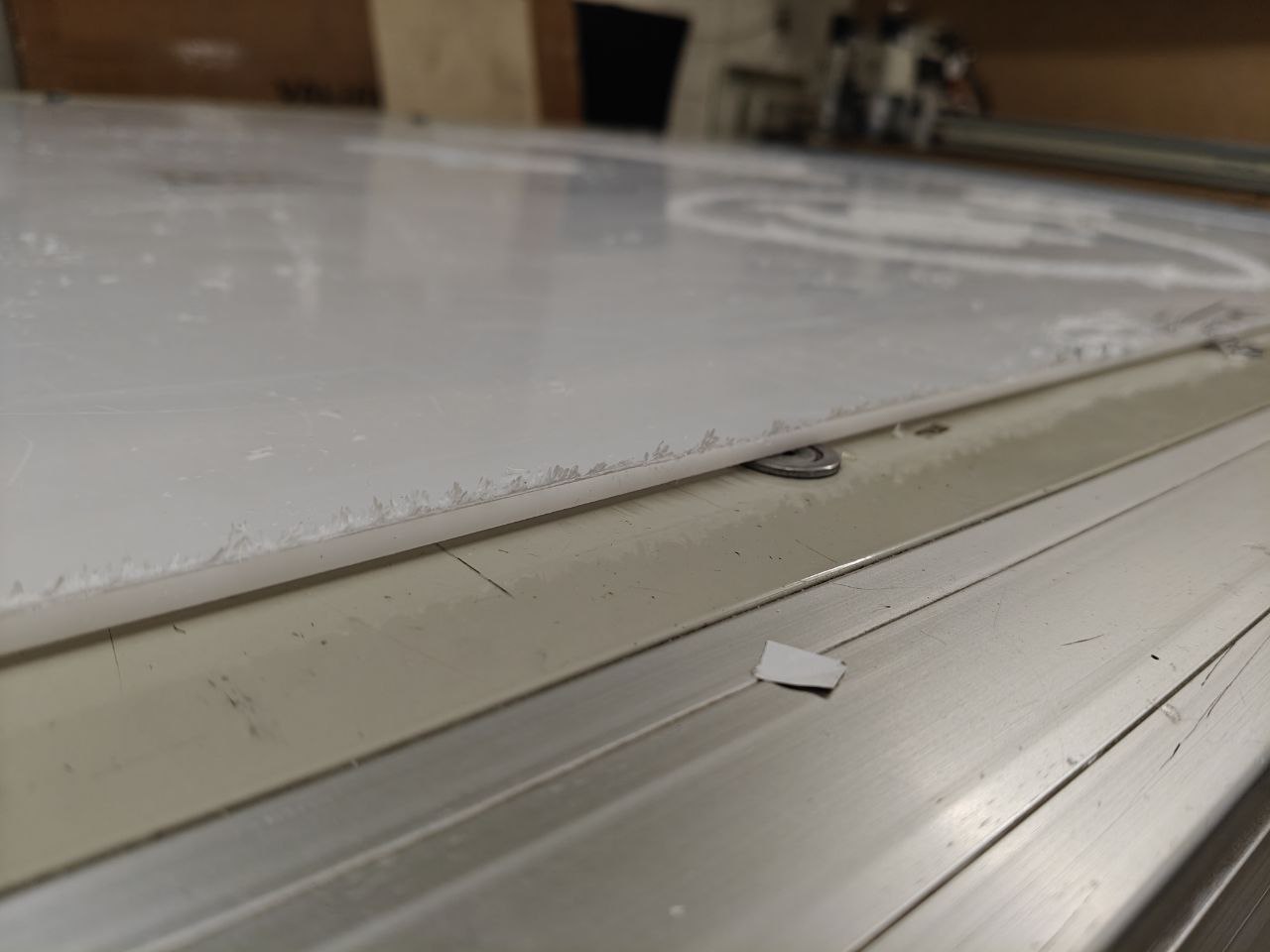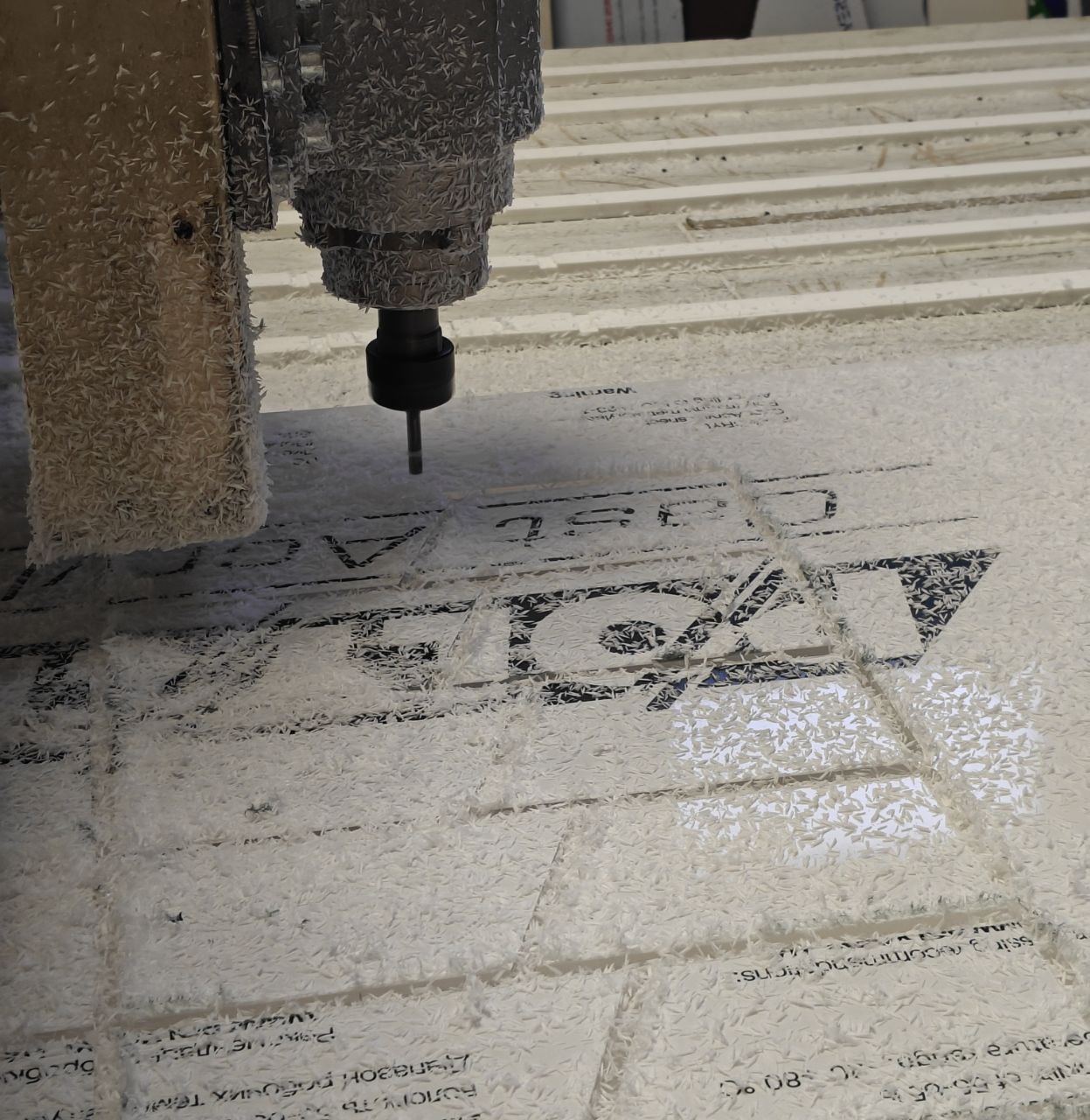 У SPRINT фрезерування акрилу виконується на сучасному високоточному ЧПУ-обладнанні з робочим столом 1350 × 2700 мм, що визначає максимальні розміри оброблюваних листів. Максимальна ширина матеріалу для порізки — 1,26 м, з урахуванням залишення робочих полів щоб порізка була точною.