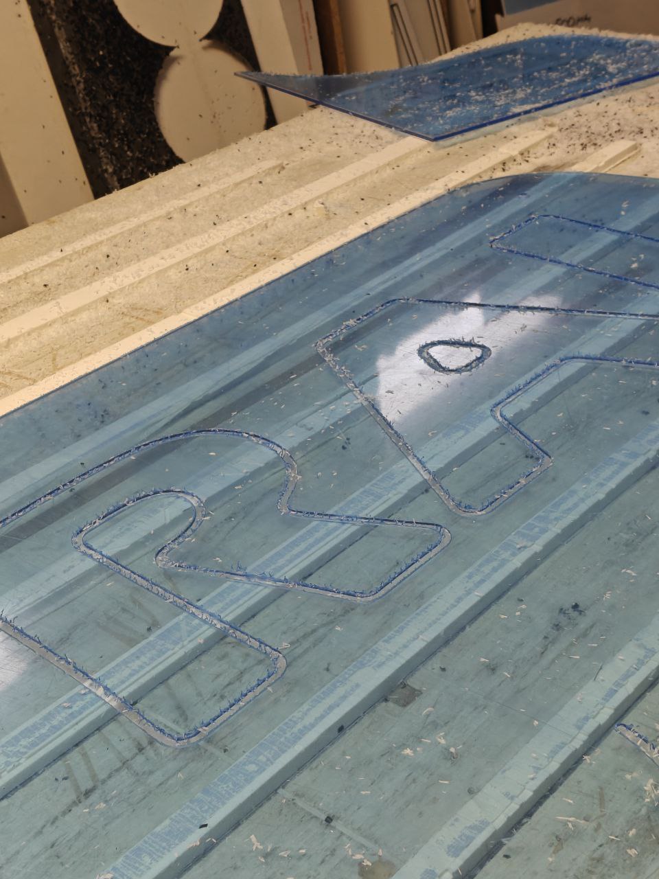 Процес починається з підбору акрилу потрібного кольору та товщини, після чого розробляється макет у відповідності до замовлення. Лист завантажується на робочий стіл ЧПУ, де інструмент акуратно вирізає контури деталей, забезпечуючи чисті кромки і точну геометрію навіть для великих панелей.