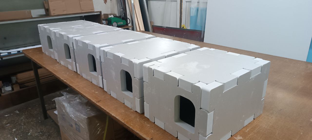 У SPRINT ми використовуємо як матеріал замовника, так і власний білий пінополістирол товщиною до 40 мм, що дозволяє реалізовувати великі та об’ємні проекти. Матеріал характеризується низькою вагою, легко ріжеться та шліфується, зберігає точні геометричні форми навіть при складній обробці.