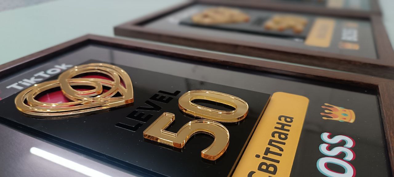 У SPRINT ми працюємо з лазерною порізкою в форматі до 1,3 × 0,9 м, що дозволяє створювати як невеликі деталі, так і середні панелі для рекламних, декоративних або брендованих виробів. Завдяки високоточному обладнанню ми можемо вирізати елементи будь-якої форми — від простих геометричних фігур до складних контурів і логотипів з тонкими деталями.