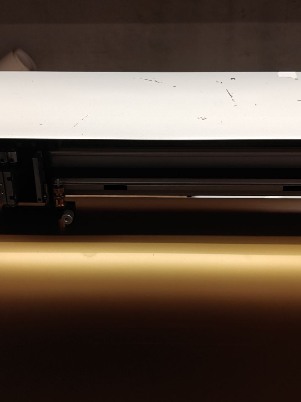 - Робоча зона плоттера: максимальна ширина робочого поля — 1230 мм, довжина — до 3–4 погонних метрів (залежно від матеріалу). Для безпечної порізки залишайте технічні поля не менше 2–3 мм від країв матеріалу.