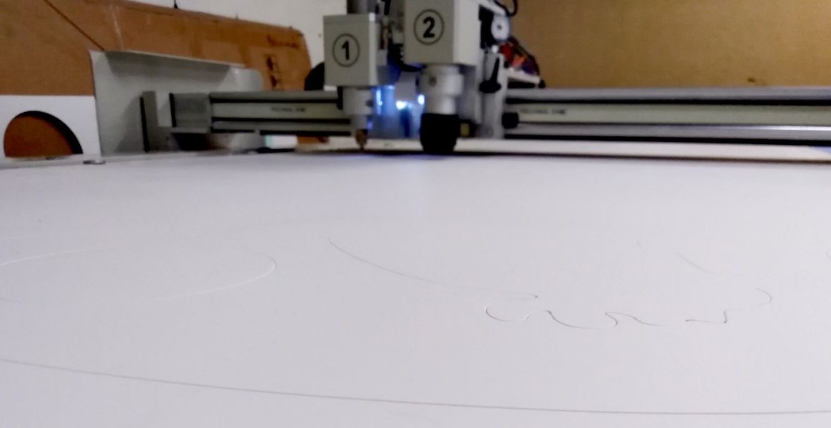 Процес починається з закріплення листа пінокартону на столі та налаштування параметрів різання під товщину матеріалу. Завдяки стабілізації та точності керування ножем, деталі виходять з рівними кромками, чіткими контурами та повторюваністю форм незалежно від складності виробу.