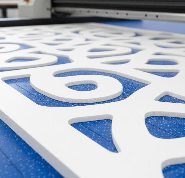 Пінокартон — це легкий, щільний та стабільний матеріал, який легко піддається різанню на планшетному плотері. Він добре зберігає форму, що дозволяє вирізати дрібні деталі, рекламні елементи, технічні заготовки та декоративні панелі без деформацій.