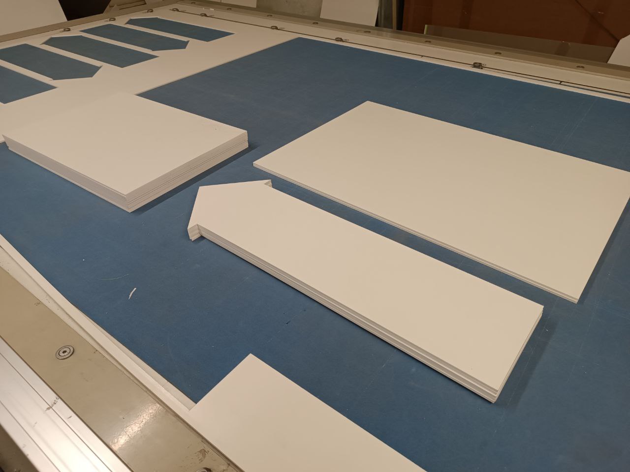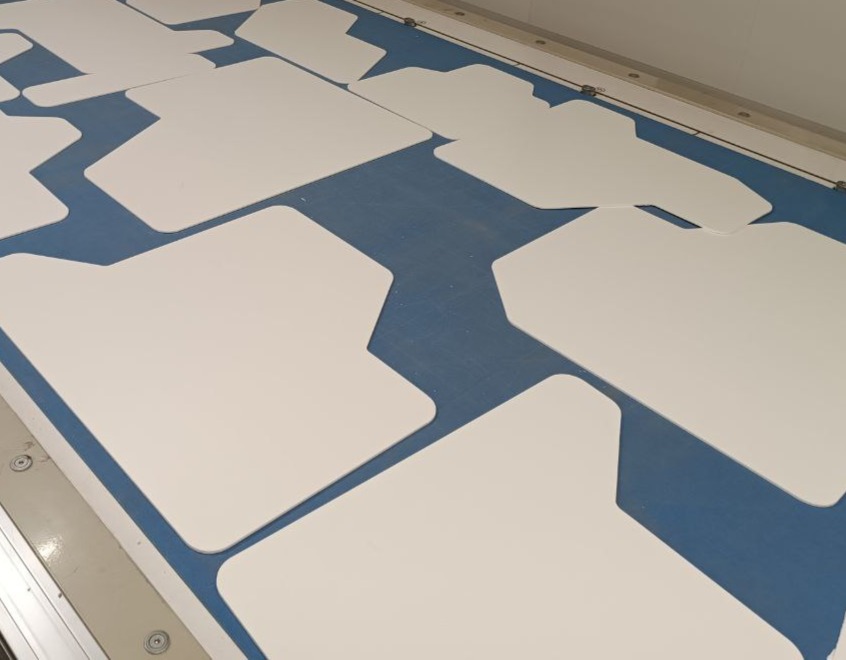 Матеріали можуть надаватися замовником або нашим складом. Завдяки точному позиціонуванню на робочому столі, ми можемо виконувати порізку великих листів з максимальною точністю, залишаючи поля для технологічних міток та забезпечуючи чисті контури.
