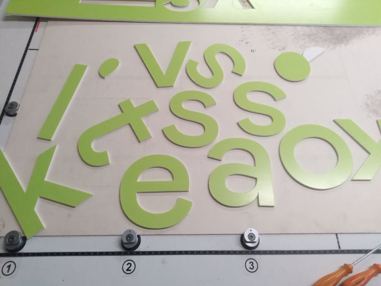 Процес починається з підготовки макета та завантаження листа ПВХ на робочий стіл. Потім фахівці налаштовують параметри глибини та швидкості різання під конкретний матеріал. Завдяки стабілізації листа на столі та високій точності керування ножем, тангенціальна різка забезпечує ідеальні контури, рівні кромки та повторюваність деталей незалежно від складності виробу.