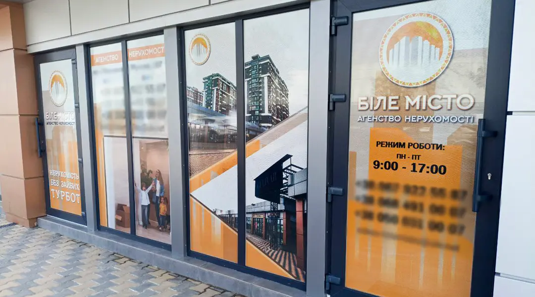 Сольвентний друк на перфорованій плівці One Way Vision — це сучасне рішення для оформлення вітрин, вікон, скляних перегородок та транспорту.