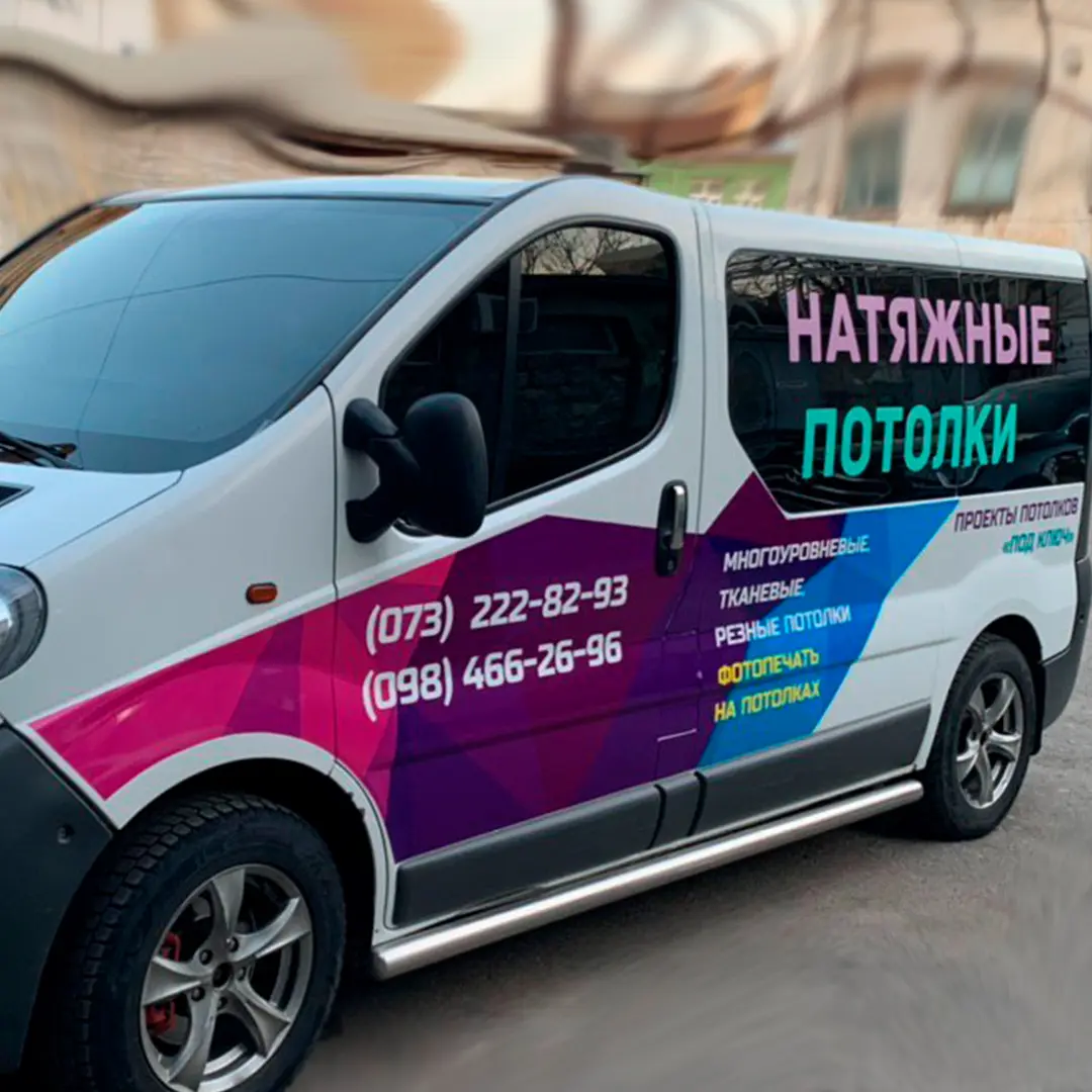 Плівка постачається в рулонах, тому можливо виготовлення як невеликих елементів кузова, так і великих рекламних полотен. Зображення зберігають високу чіткість та насиченість навіть при великих масштабах.