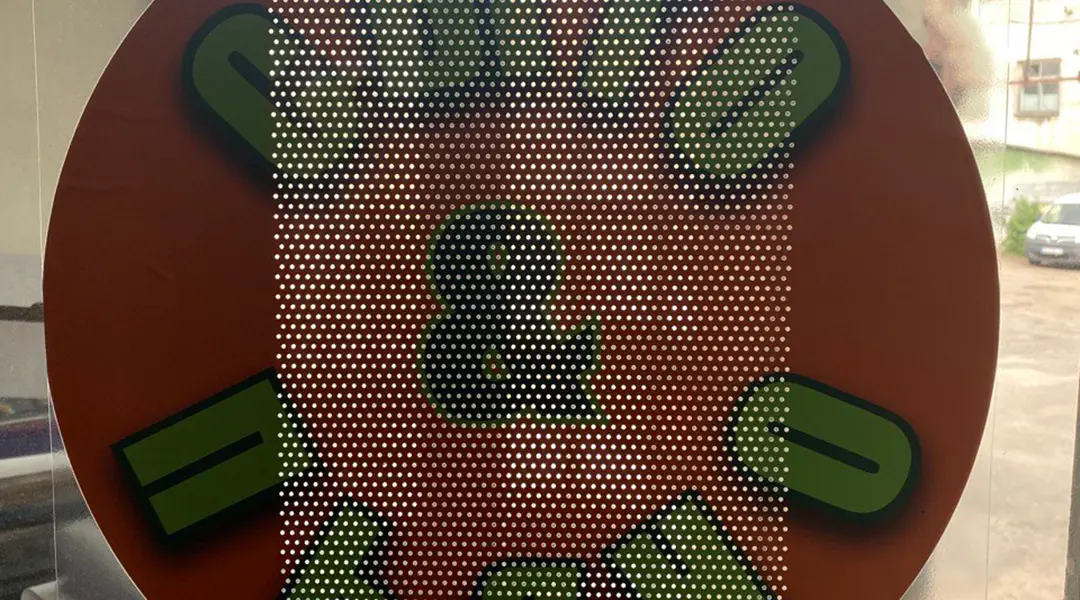Ультрафіолетовий друк на самоклеючій плівці з імітацією перфорації — це сучасний метод, який дозволяє переносити будь-які зображення прямо на поверхню матеріалу з високою деталізацією та насиченими кольорами. На відміну від традиційної перфоплівки, наша технологія створює ефект прозорої перфорації, завдяки чому зображення стає видимим з обох сторін.